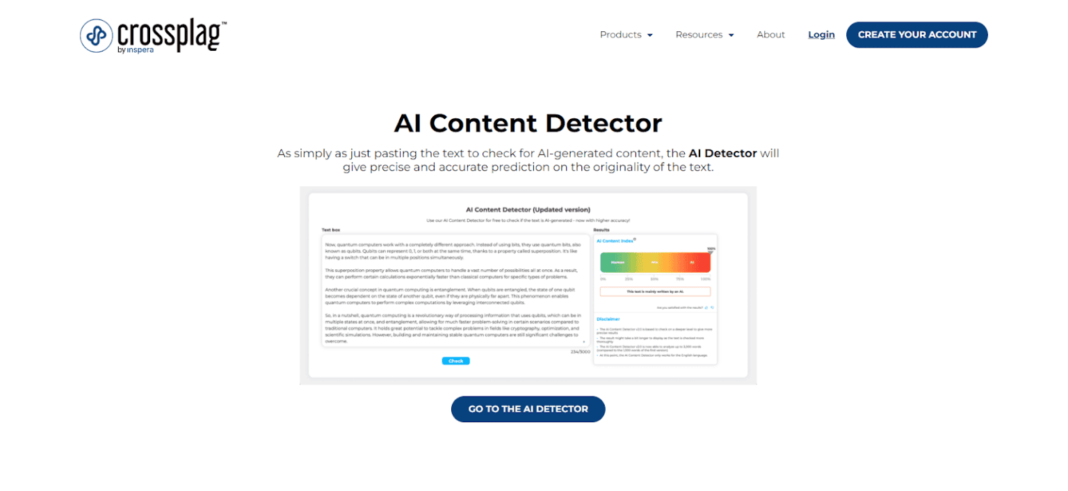 CrossPlag’s AI detector is free, but you need to create an account to use it.