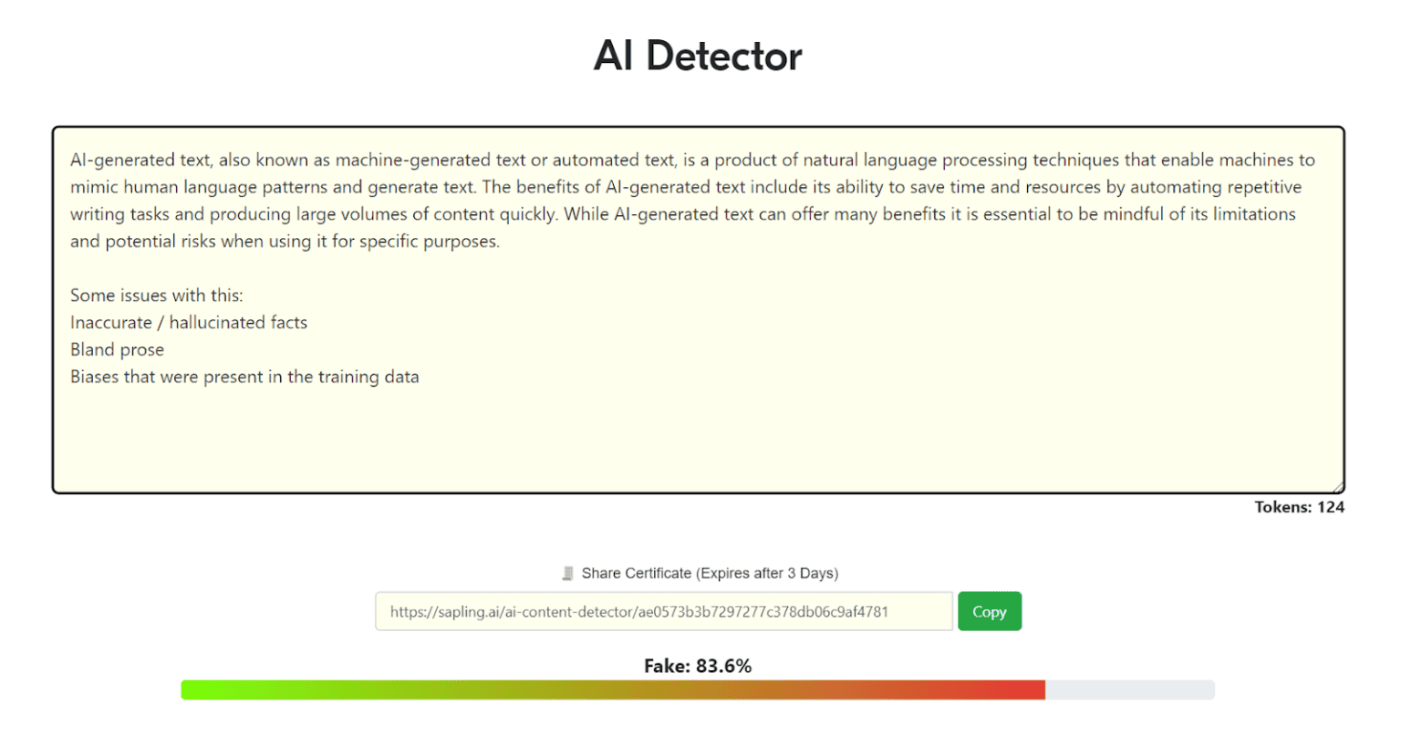 Sapling is a tool that helps with writing and checking content using AI. Its main feature is spotting AI-generated text. Engineers from big places like Google, Meta, Stanford, and UC Berkeley made it, so it’s likely very reliable.