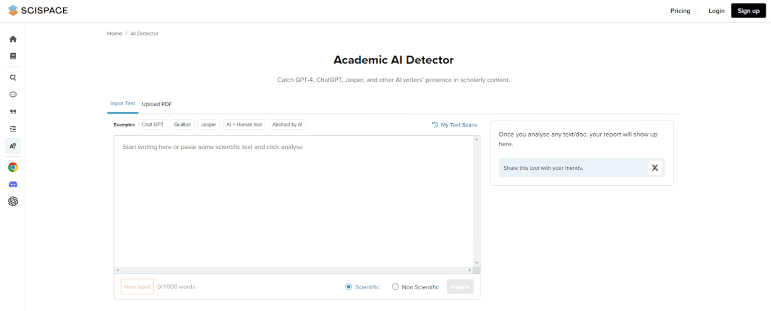 I’ve recently come across SciSpace, and I find it quite impressive. It stands out from other AI detectors because it zeroes in on stopping AI misuse in academic settings. This helps teachers and students avoid the hassle of dealing with incorrect detections.