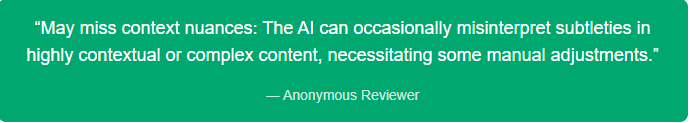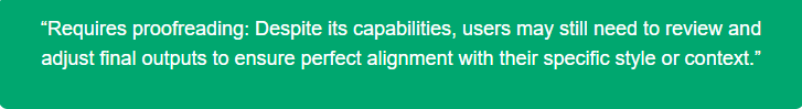 - Even though it’s advanced, sometimes it misses the mark on context. You’ll check what it produces and adjust bits to fit your original vision.