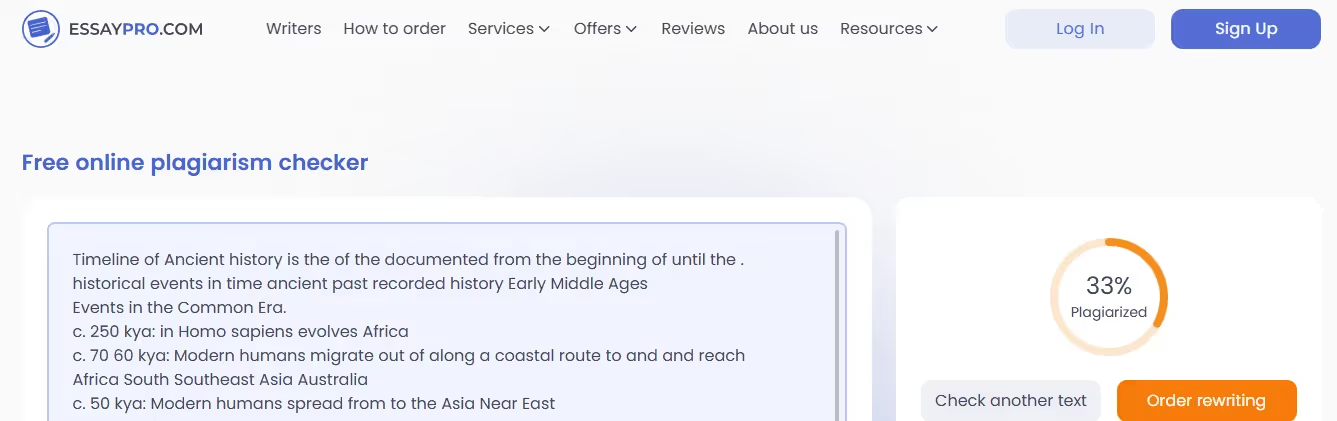 The brief overview comes from the findings of the EssayPro Plagiarism Checker. Check out our full review below to understand how this plagiarism tool stacks up against Originality.ai.