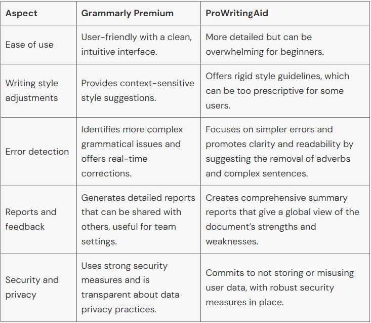 Both Grammarly Premium and ProWritingAid provide many tools to enhance writing. Yet, they differ in some key ways.