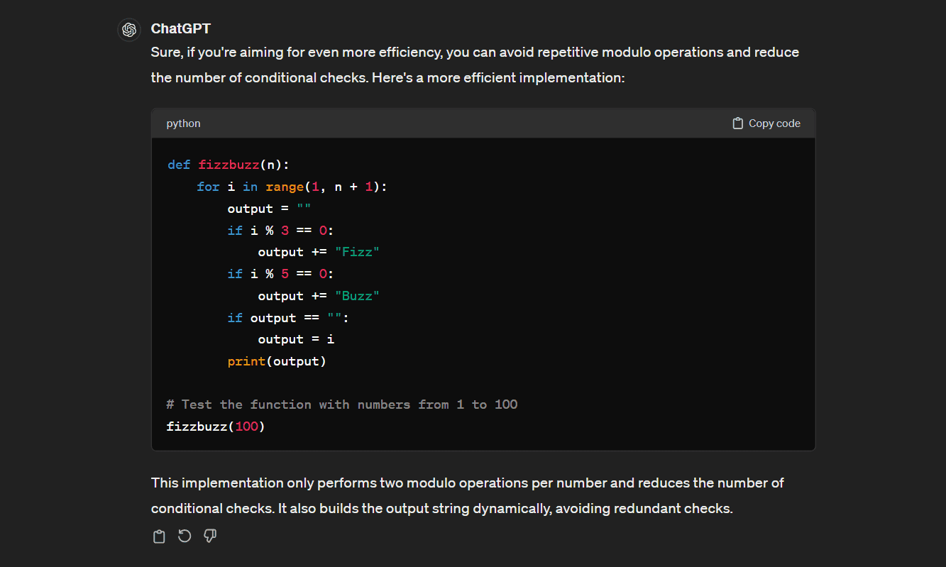 Before we go on, I’m going to make a Python script with ChatGPT and save it as a .py file. I asked ChatGPT to write code for Fizzbuzz, which is a well-known Leetcode challenge.