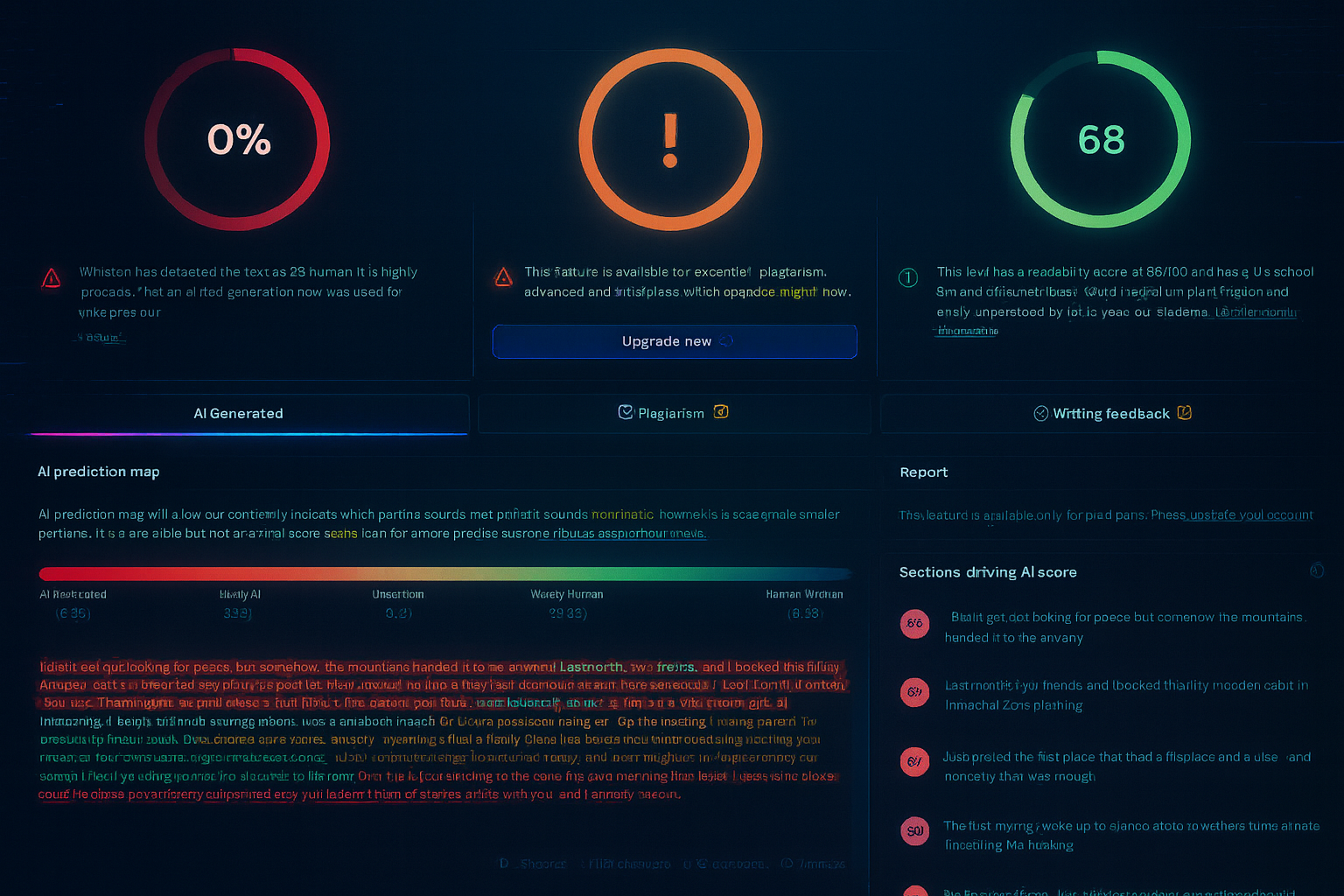 I asked ChatGPT to adjust the text so it could go undetected by AI systems. It improved a bit, showing a 59% human-like score for some lines, but most of it still got tagged as AI-made.