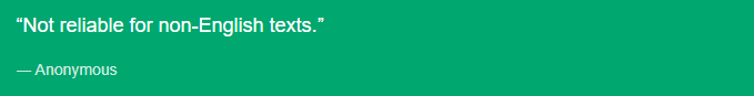 - Handling texts in languages other than English can be challenging. The outcomes vary, and it seems like the tool is designed primarily for English.