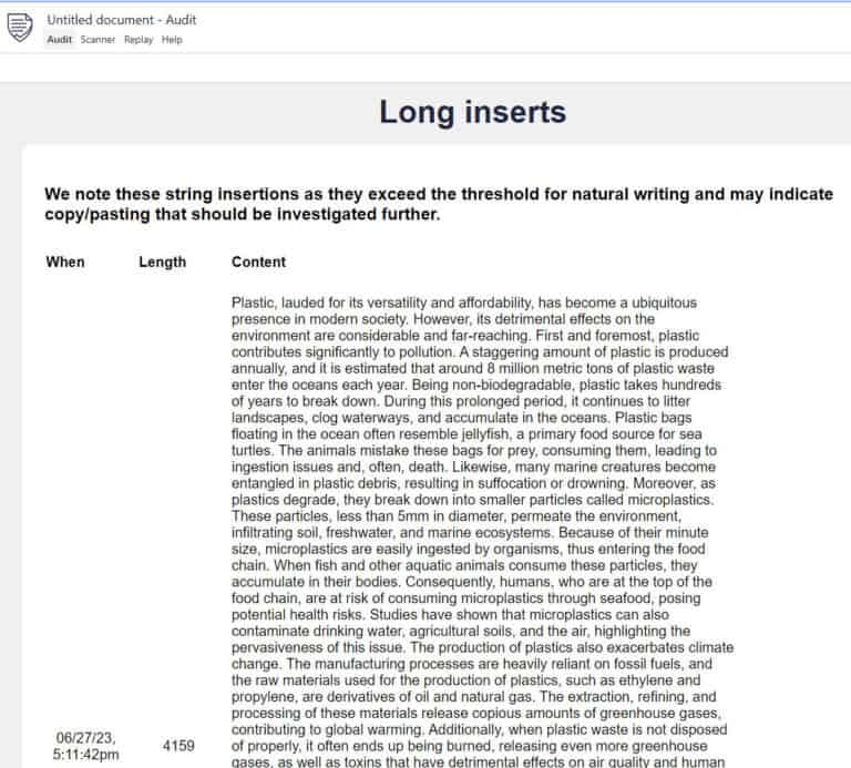 Interestingly, Passed AI seems better at catching bits of copied content in older work compared to newer stuff. The Document History Audit and Replay Tool really boosts the analysis by offering deeper insights into someone’s writing.