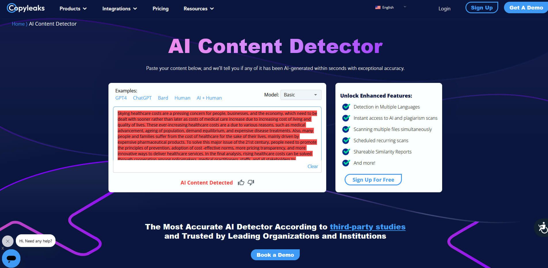 We put the human-like text through Copyleaks, a top AI detector. Copyleaks quickly flagged all of it as AI-written, indicating Phrasly didn’t humanize it well.