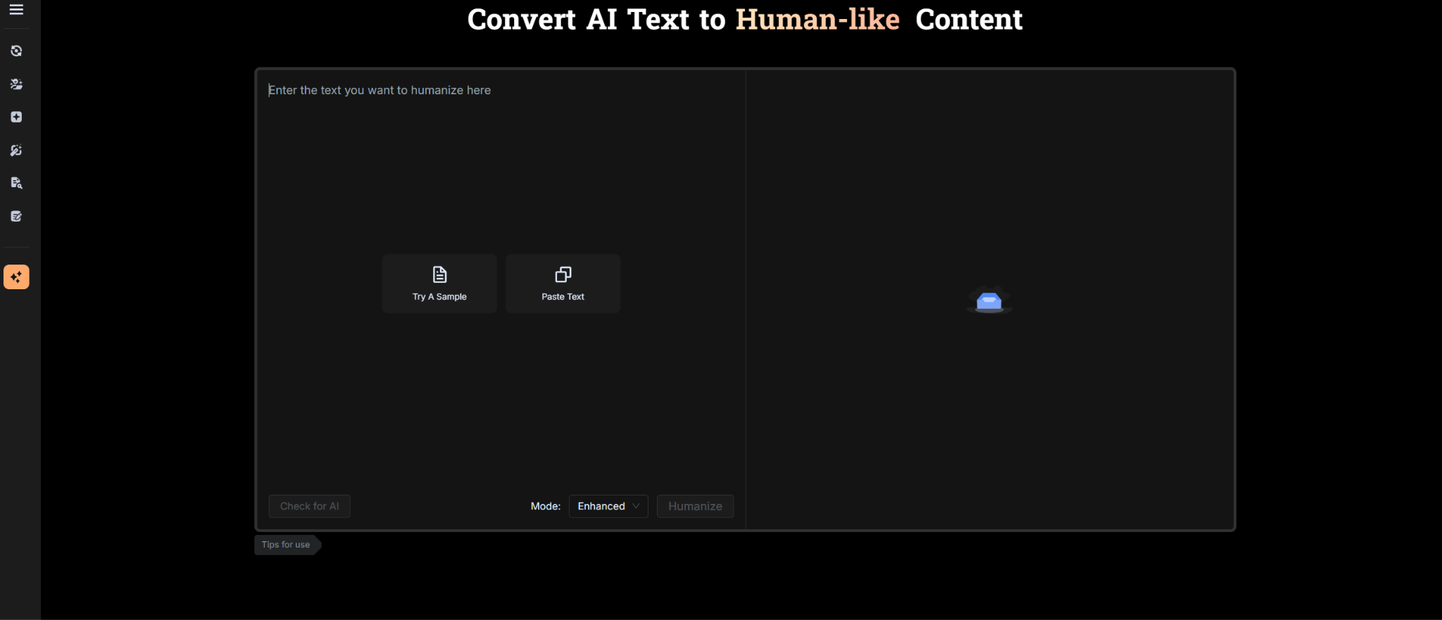 Humaniza.io is a state-of-the-art tool designed to bypass AI detection with its special feature that makes AI-generated text sound human. When users input text, it quickly examines the patterns and content to find the best way to rewrite it, making it look like a person wrote it.