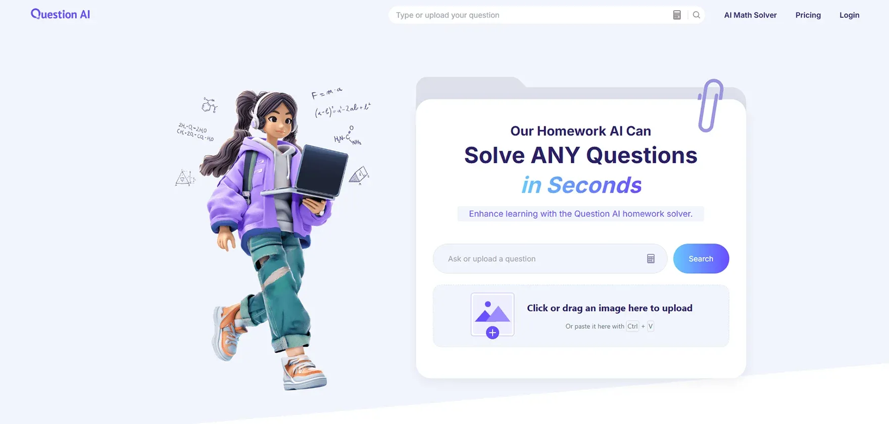 Question AI is a platform that stands out for being both simple and effective. You won’t be interrupted by ads or required to fill out forms. A key feature is its ability to solve problems by analyzing pictures, offering both solutions and explanations.