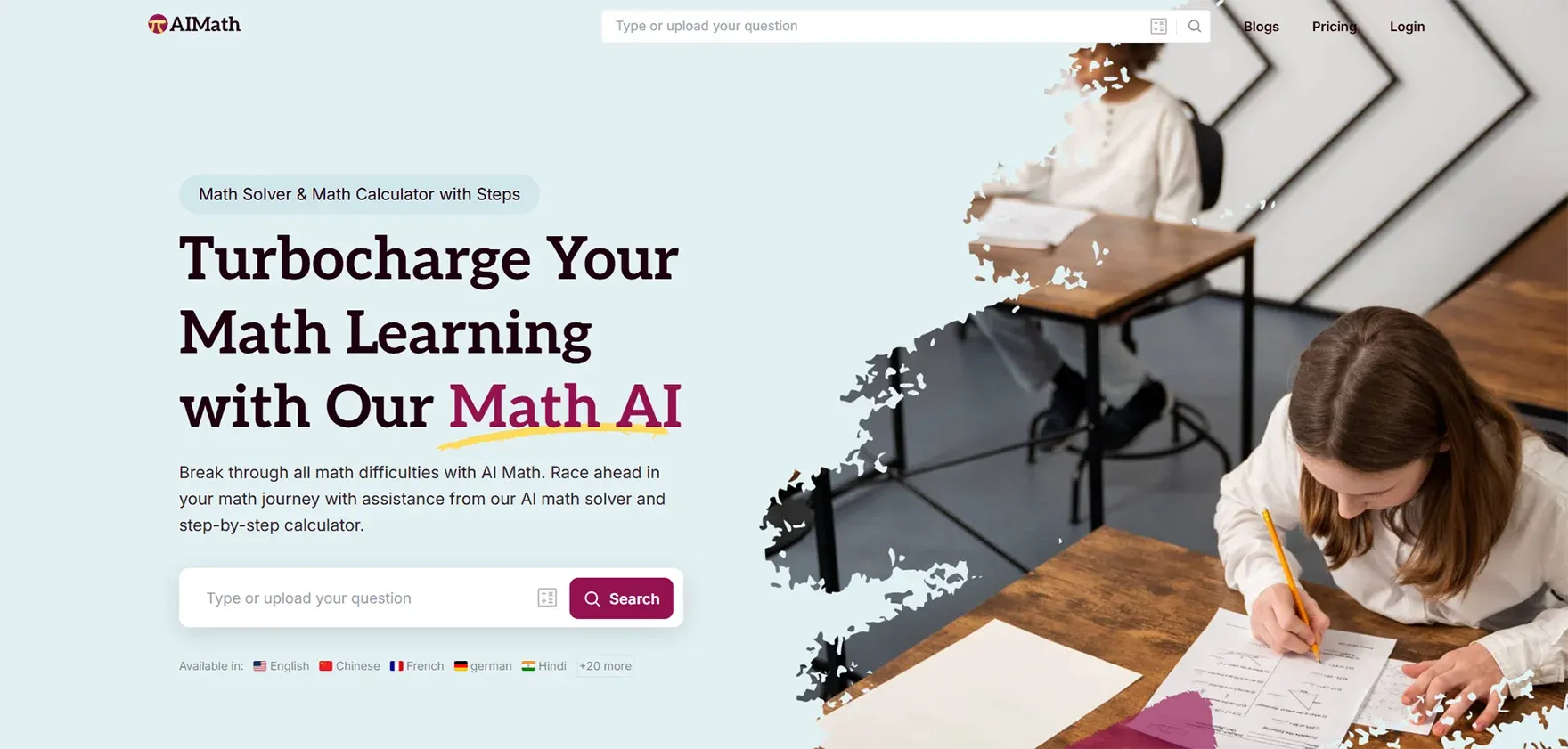 AI Math is a tool designed to tackle math problems. It handles a range of complex issues, from algebra to calculus, with nearly perfect accuracy. If math was a struggle in school, platforms like AI Math can be quite helpful.