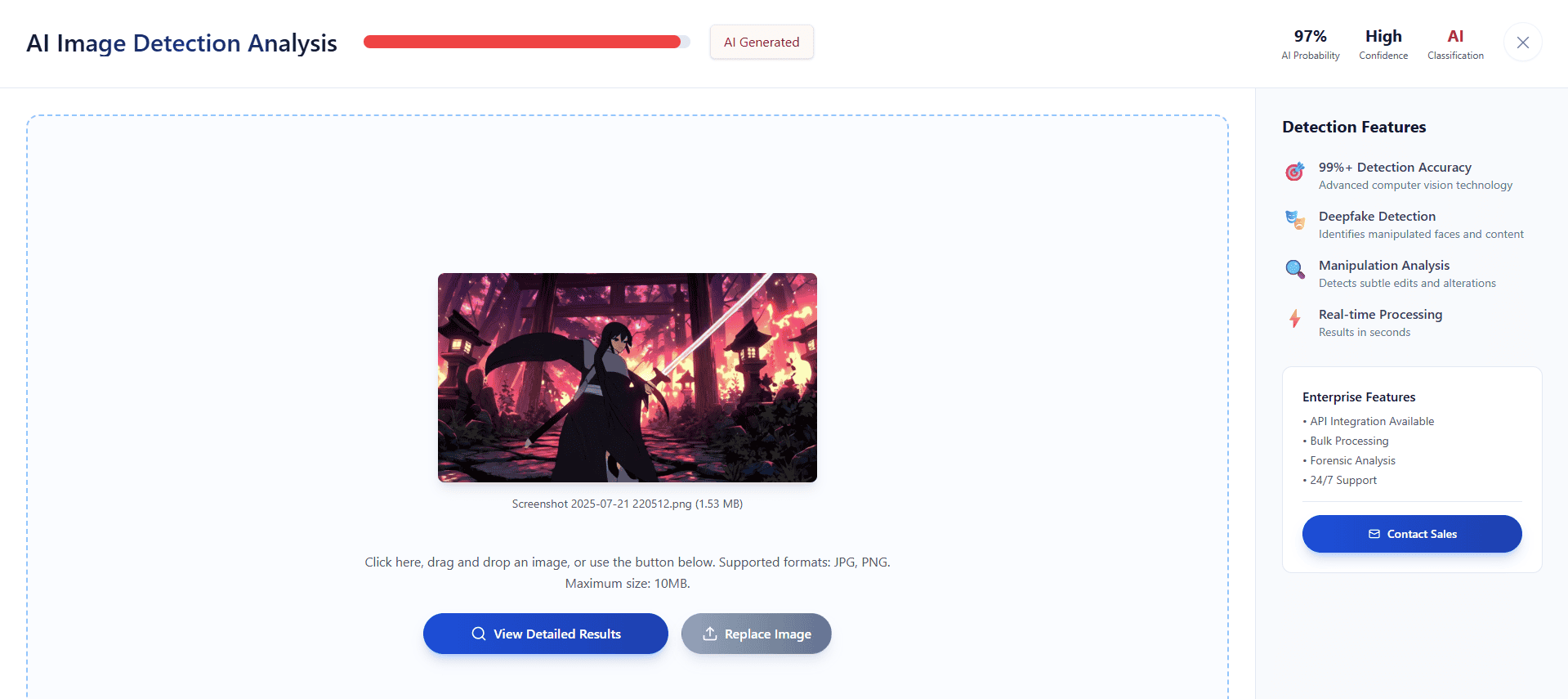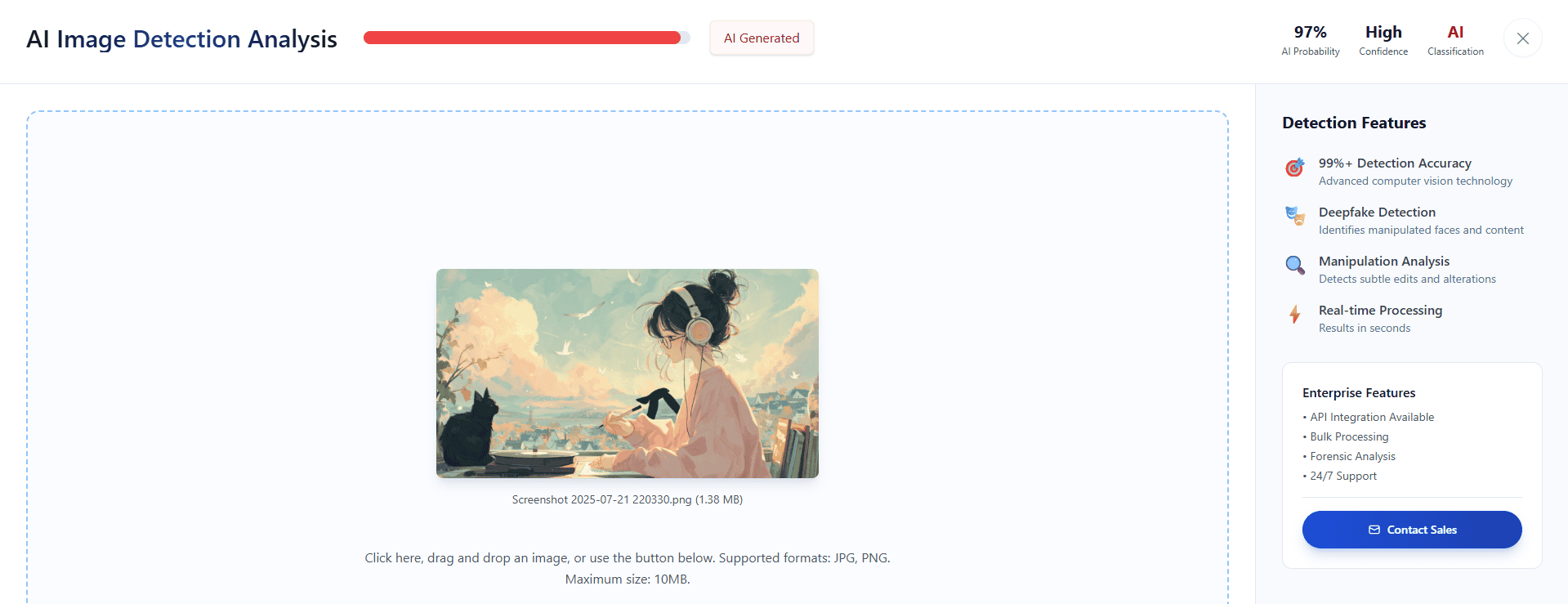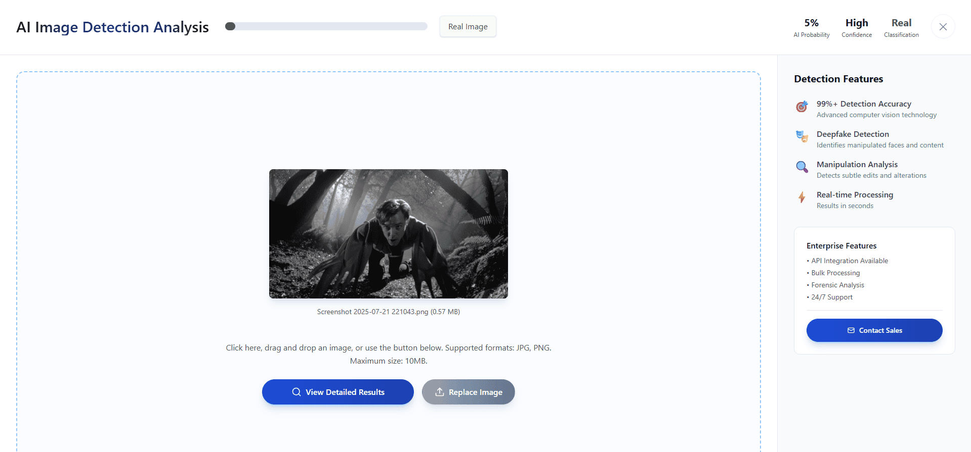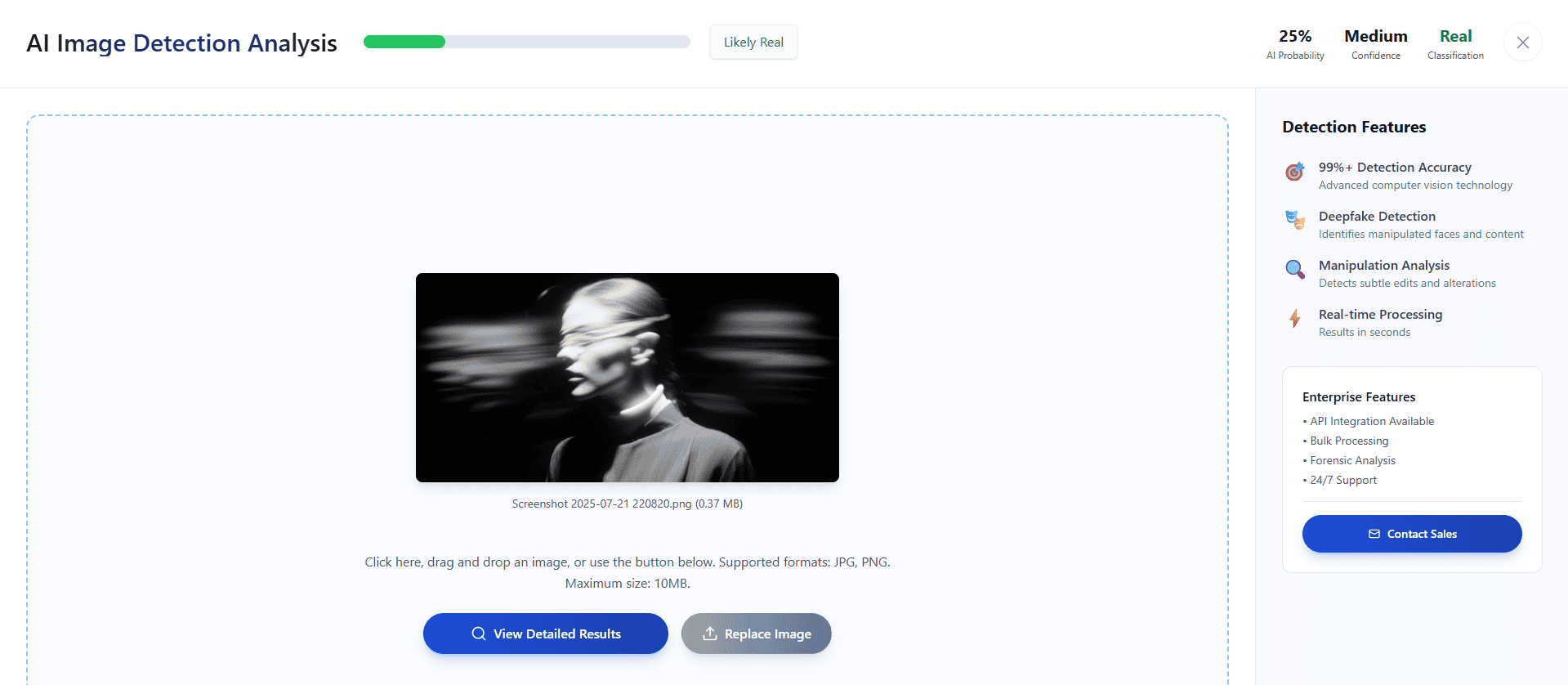 This one stands out due to its promise of over 99% detection accuracy, processing times under two seconds, and support for more than 50 file formats, including common ones like JPG and PNG, as well as video files like MP4.