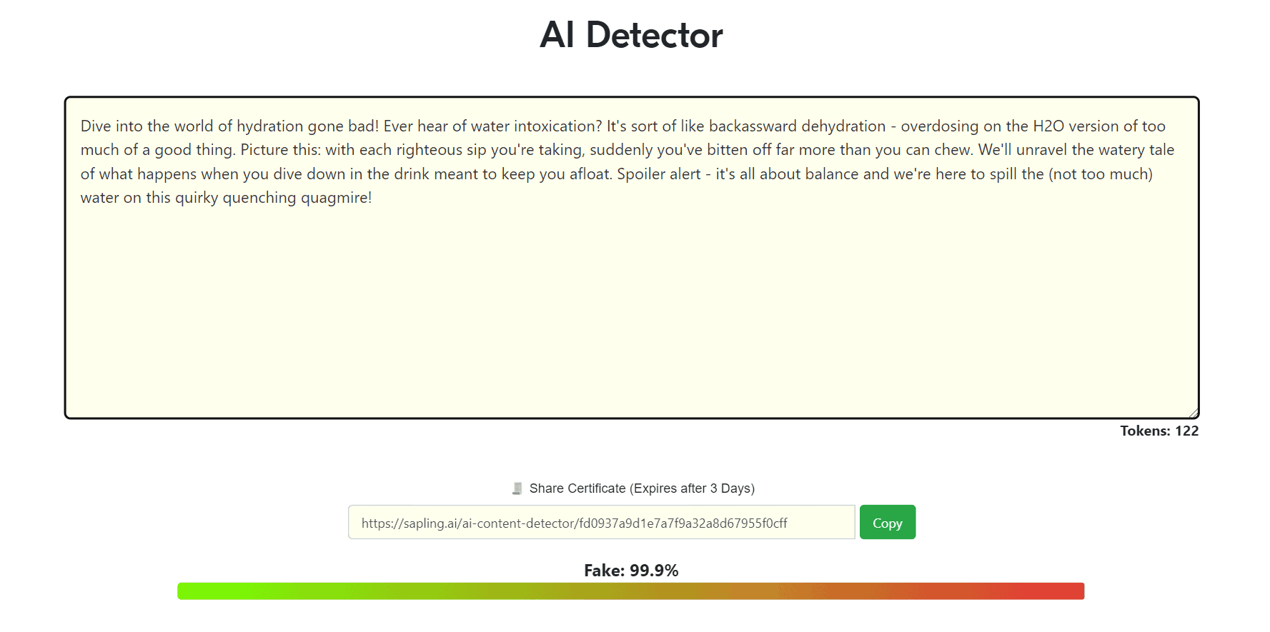 If you take the same sentence from Undetectable AI and add a missing comma, it makes more sense: