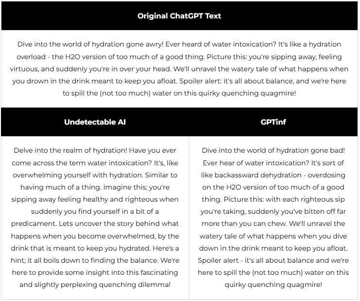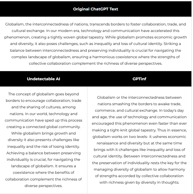 At first glance, Undetectable AI might seem harder to read than GPTinf because of its odd punctuation. But if you read through it, you’ll see that Undetectable AI, with correct punctuation, flows better than GPTinf. For example, this part from GPTinf doesn’t really make sense to me: