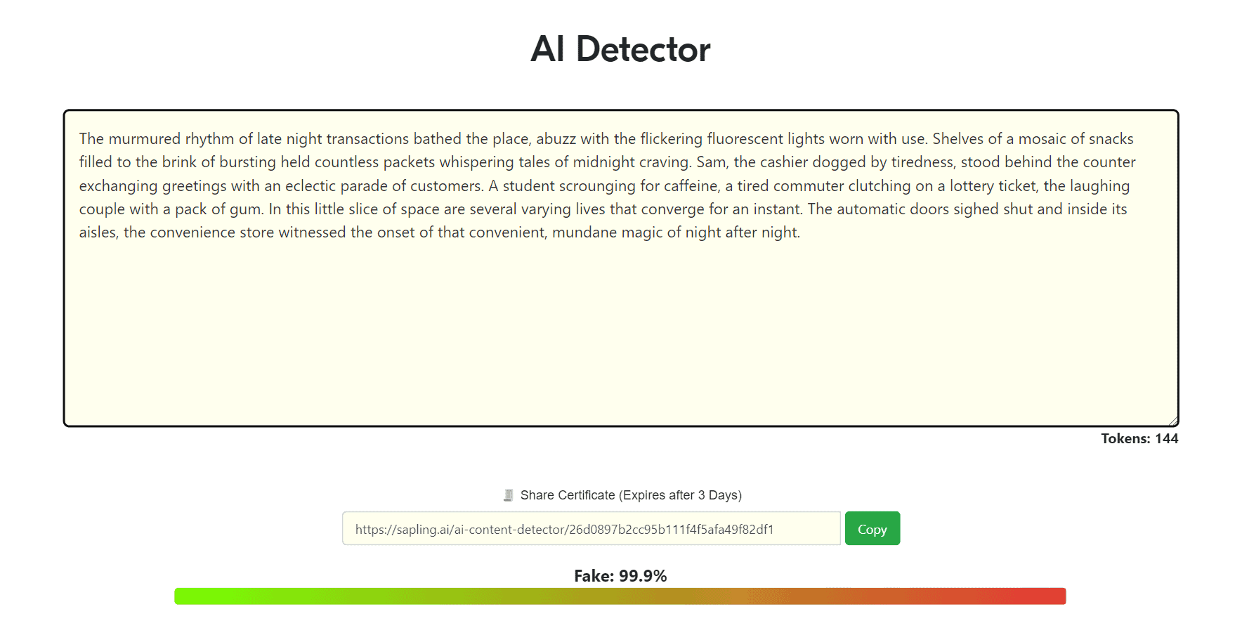 Undetectable AI’s story doesn’t really feel like a story. Instead, it’s like the end result of a game of Telephone, where the message gets so mixed up it’s hard to follow. I wouldn’t want to use it as a bedtime story.