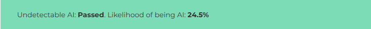 While Undetectable AI might dodge AI detection, it still feels off. Anyone can tell it’s not written by a human—it’s too dull, and the words are overly fancy.