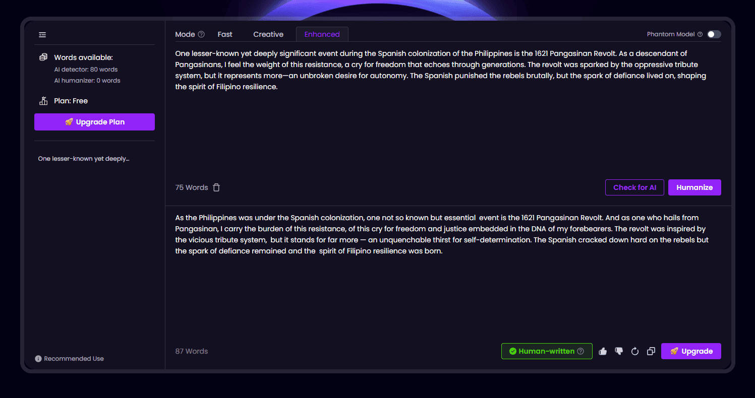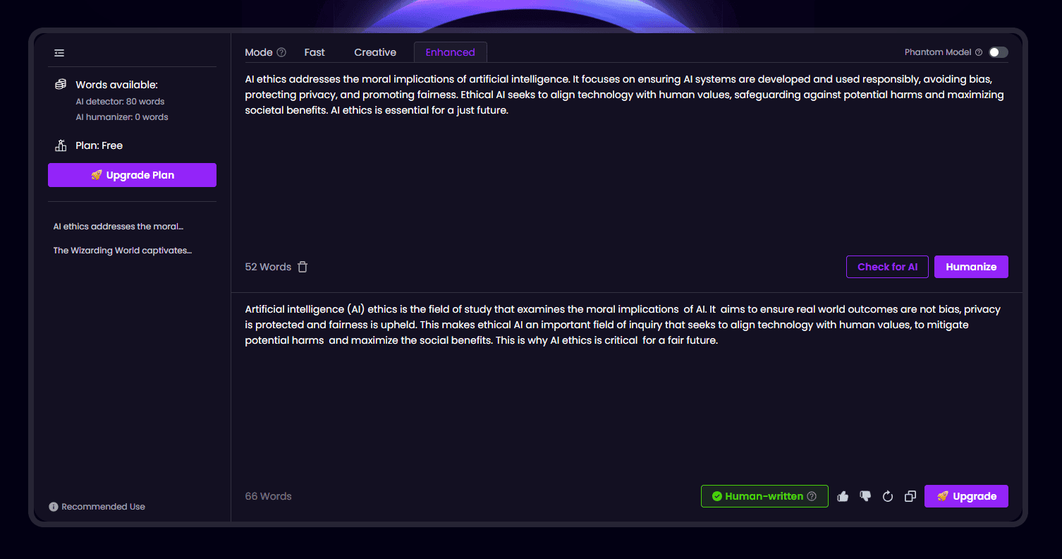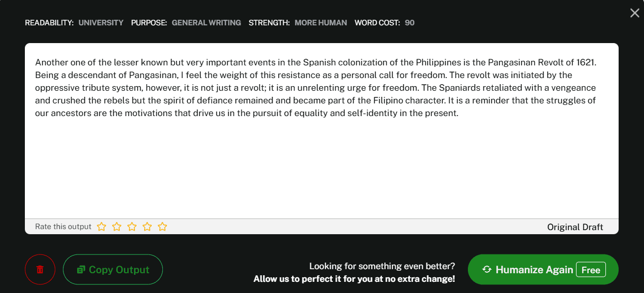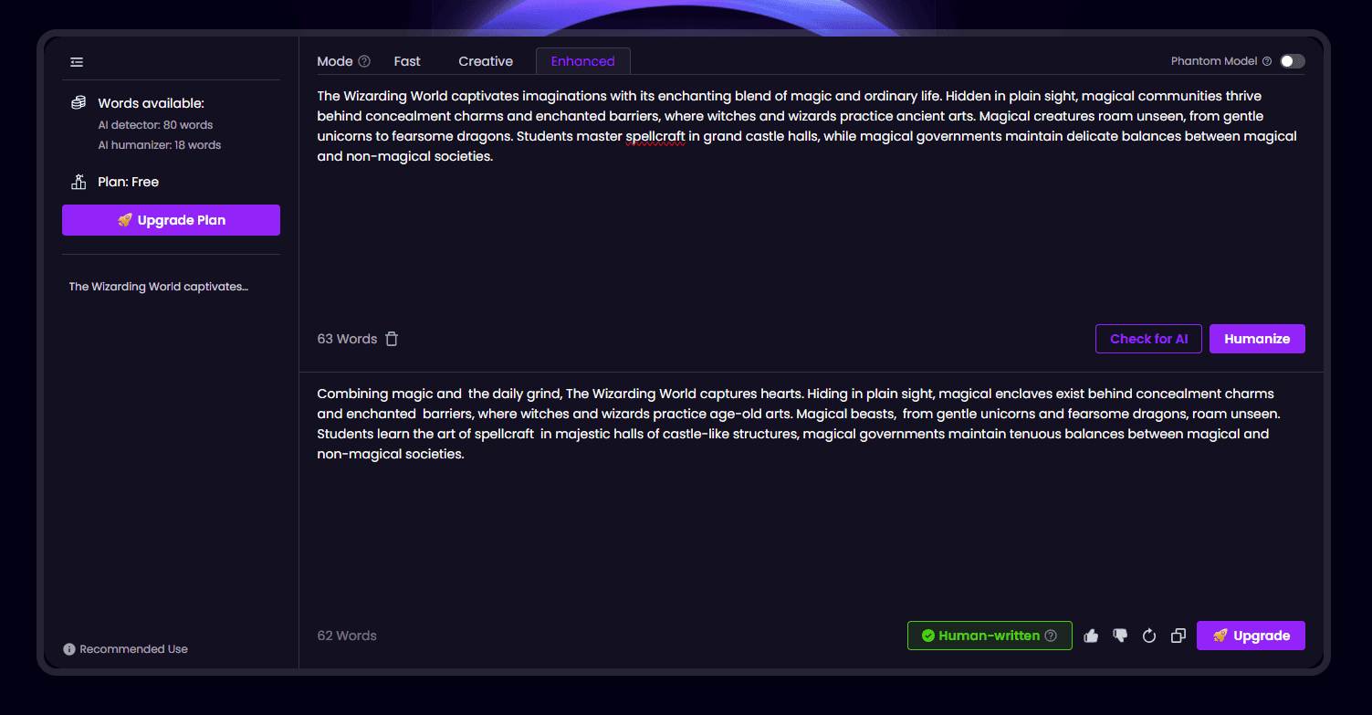 Rewritify is quite good, but I don’t see it as a good buy. It doesn’t offer anything that Undetectable AI can’t, and it’s less budget-friendly. Plus, their free trial is limited (only 80 words per account, while Undetectable AI offers 200 words and daily spins for extra words), making it harder to access.
