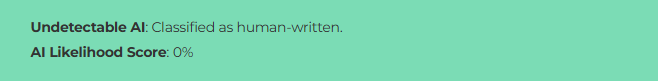 Still, we’re not without options. You can use your own AI detector and learn how these algorithms function to avoid false positives. And if you’re aiming higher, try using Undetectable AI to make your writing seem more human and dodge detectors.